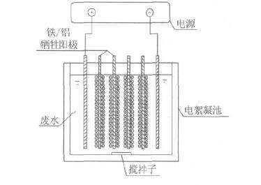 可溶性陽極例如鐵、鋁等陽極,在電源作用下,陽極失去電子后,形成金屬陽離子Fe2+、Al3+,與溶液中的OH-成金屬氫氧化物膠體絮凝劑,吸附能力極強,將廢水中的污染物質(zhì)吸附共沉而去除。